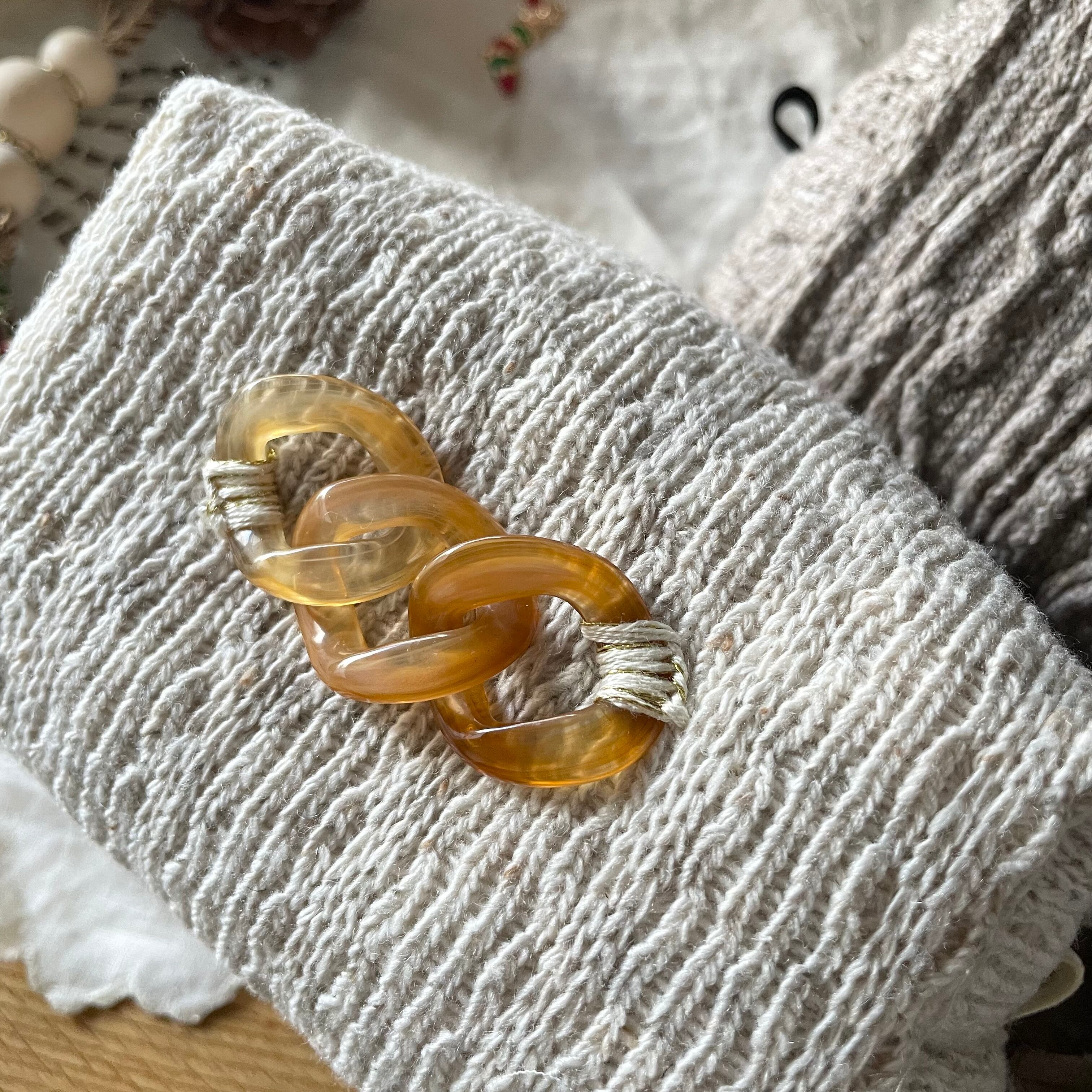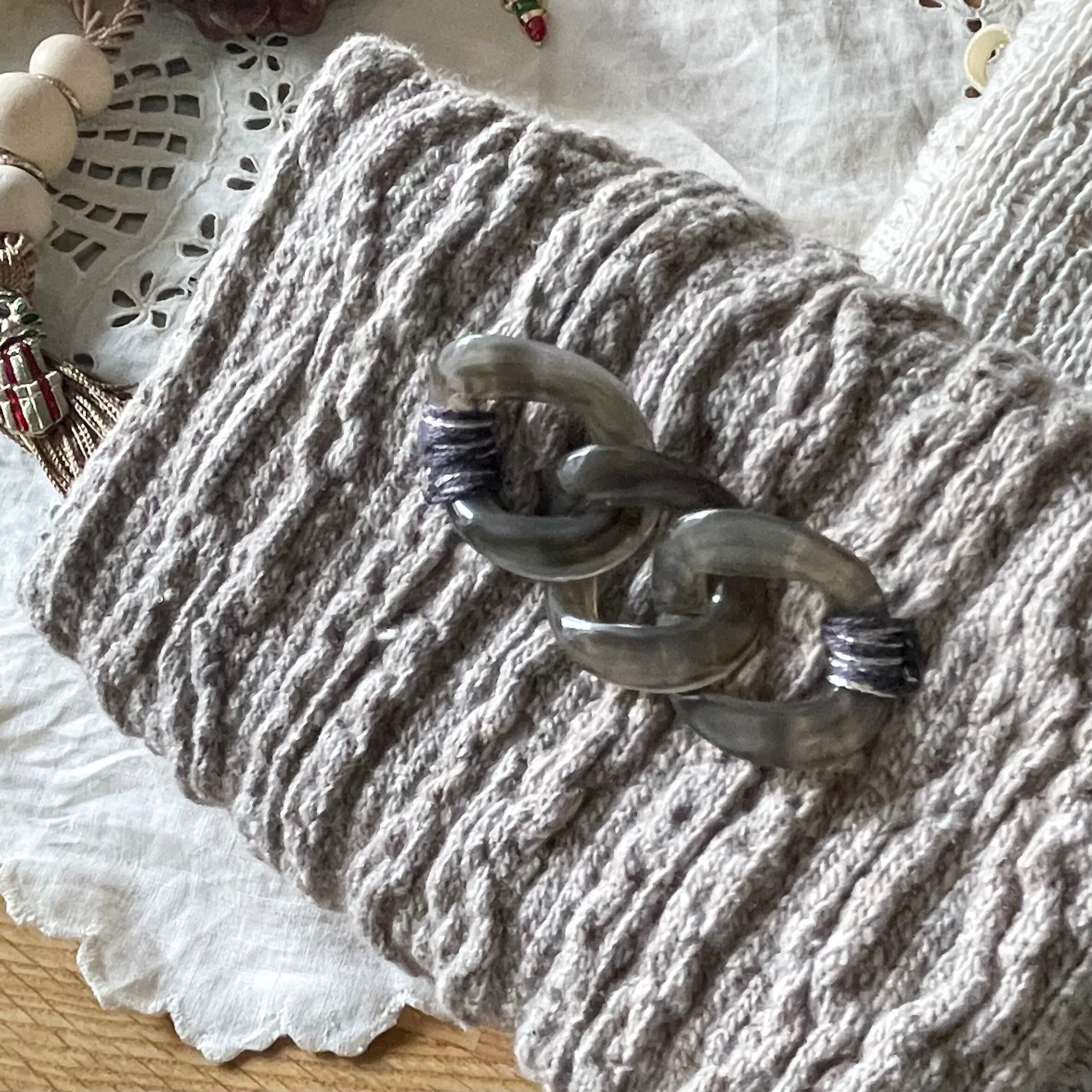 アクセントにジャンボサイズのアクリルチェーンを止めつけました。