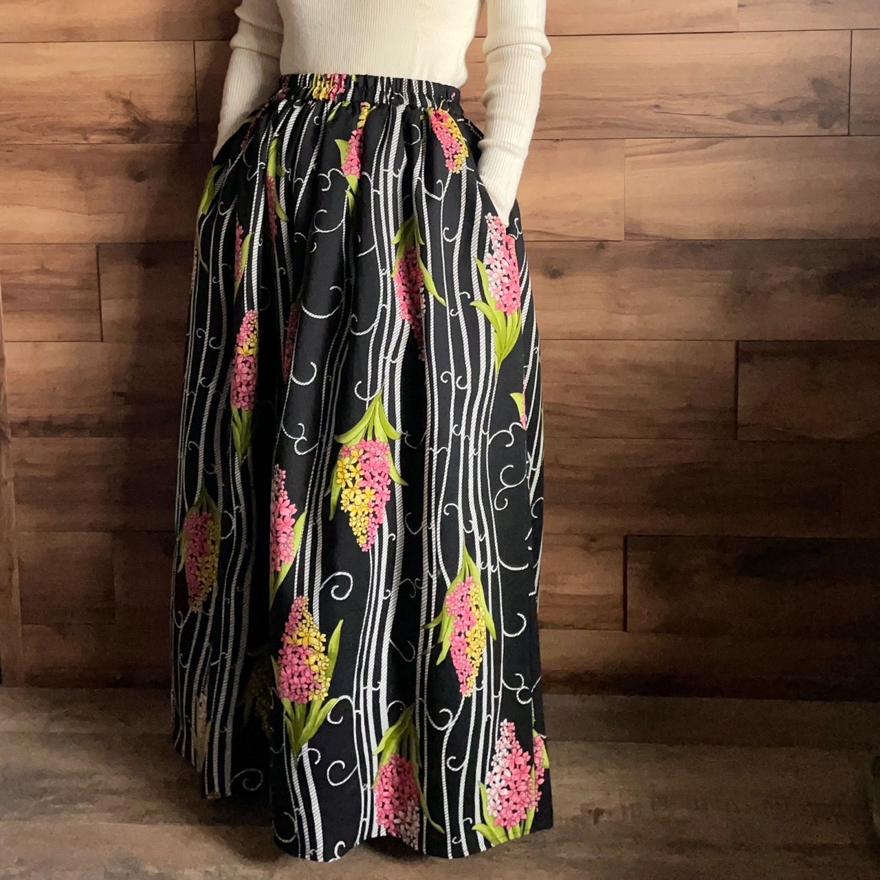この貴重な素材に新たな命を吹き込み誕生したのが、シンプルなロングギャザースカートです。